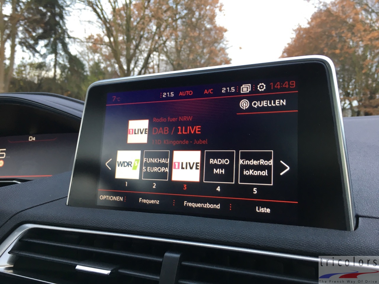 Hier hat PEUGEOT, entgegen des aktuellen Trends, wieder mehr Knöpfe im Vergleich zum digitalisierten 308 GT spendiert. Der Tacho erstrahlt im vollständig digitalen Gewand und verkündet (leider?!) das Ende der analogen Instrumente. Bei der ersten Drehung des Zündschlüssels beeindrucken Animationen im Tacho und lassen den Wagen frisch und auf der Höhe der Zeit wirken.